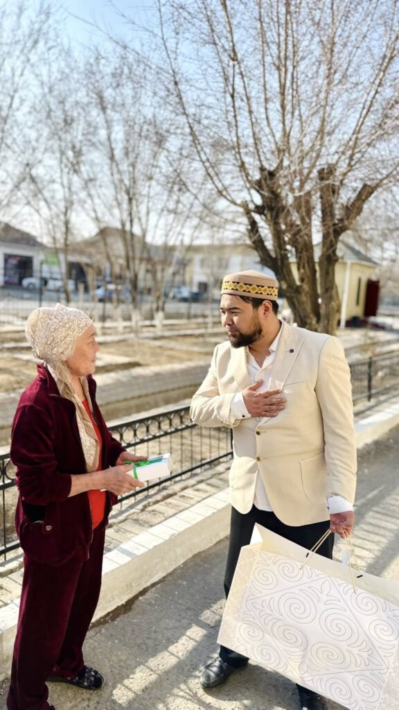 Нақтырақ айтсақ, Қызылорда қалалық «Нұр», «Мырқы қажы», «Хазрет Осман», «Алдажар жаме», «Мубарак», «Қарауылтөбе» және «Ерназар Мақсұм» мешіттерінің қызметкерлері қарияларға айт мерекесіне орай сыйлықтар тарту етіп, жылы лебіздерін жеткізді. Кездесу барысында ақсақалдар мен әжелер ақ баталарын беріп, шынайы ризашылықтарын білдірді.